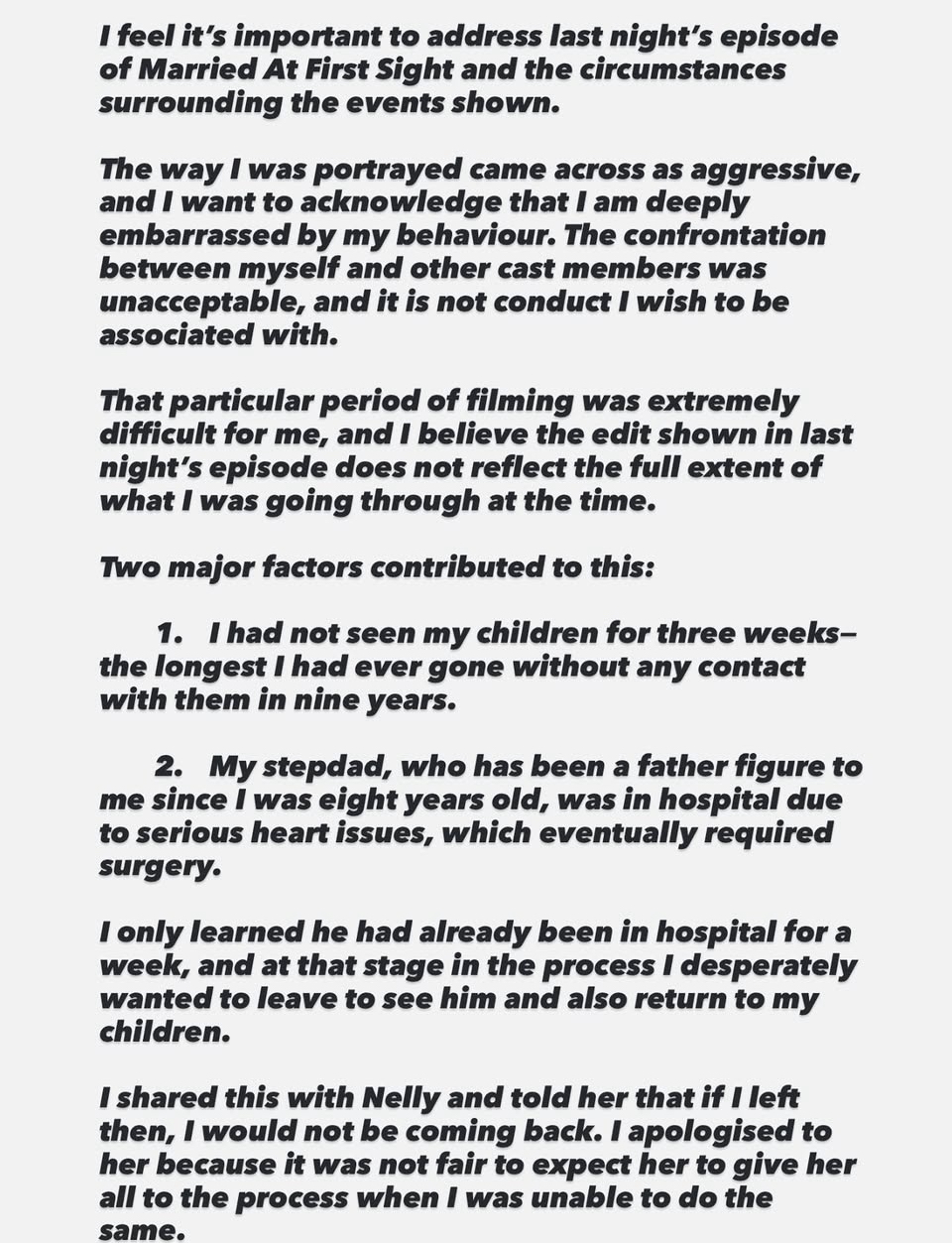 Steven then explained he’d told Nelly about this situation privately, and apologised for how it was impacting his actions.