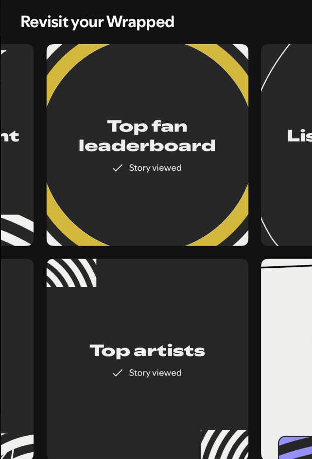 Your number rank will appear when you first watch your Spotify Wrapped reel. Then, you can go back and see it again by going to the “Revisit your Wrapped” section here and clicking on the “Fan Leaderboard” box.