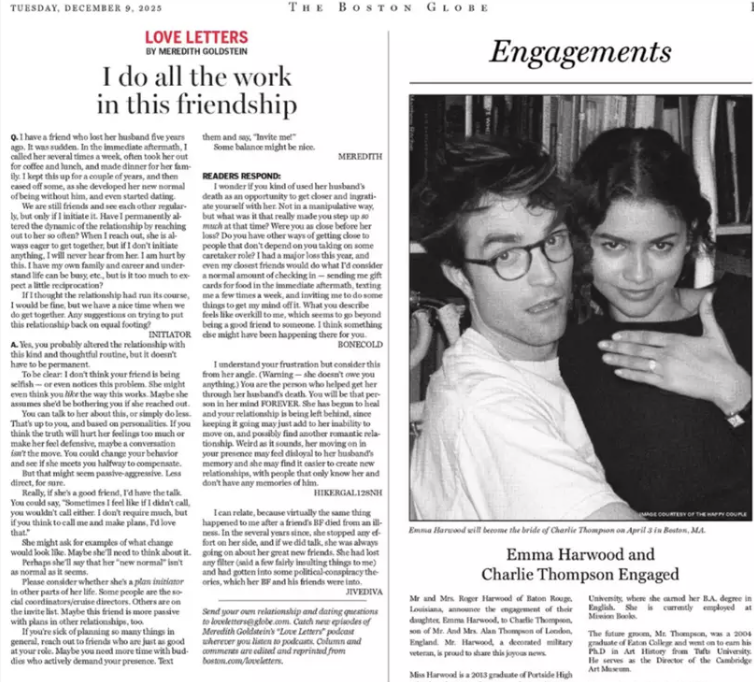 The Boston Globe later explained that they’d received an “unusual request” asking if their TV critic column could be bumped to make space for an advert. That advert ended up being the now-viral fake engagement announcement promoting The Drama.