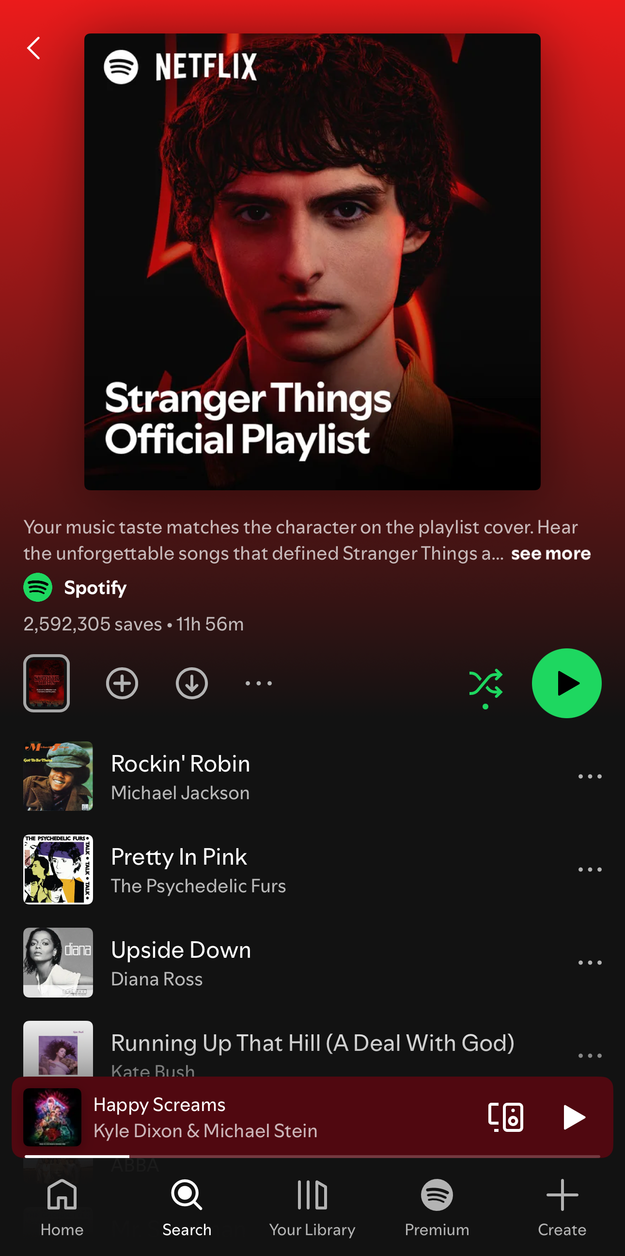 It’s especially handy if you didn’t grow up in the ’80s and don’t instantly recognise half the soundtrack. To find it, just open the Stranger Things playlist on mobile and tap the tiny rectangle above the very first track.