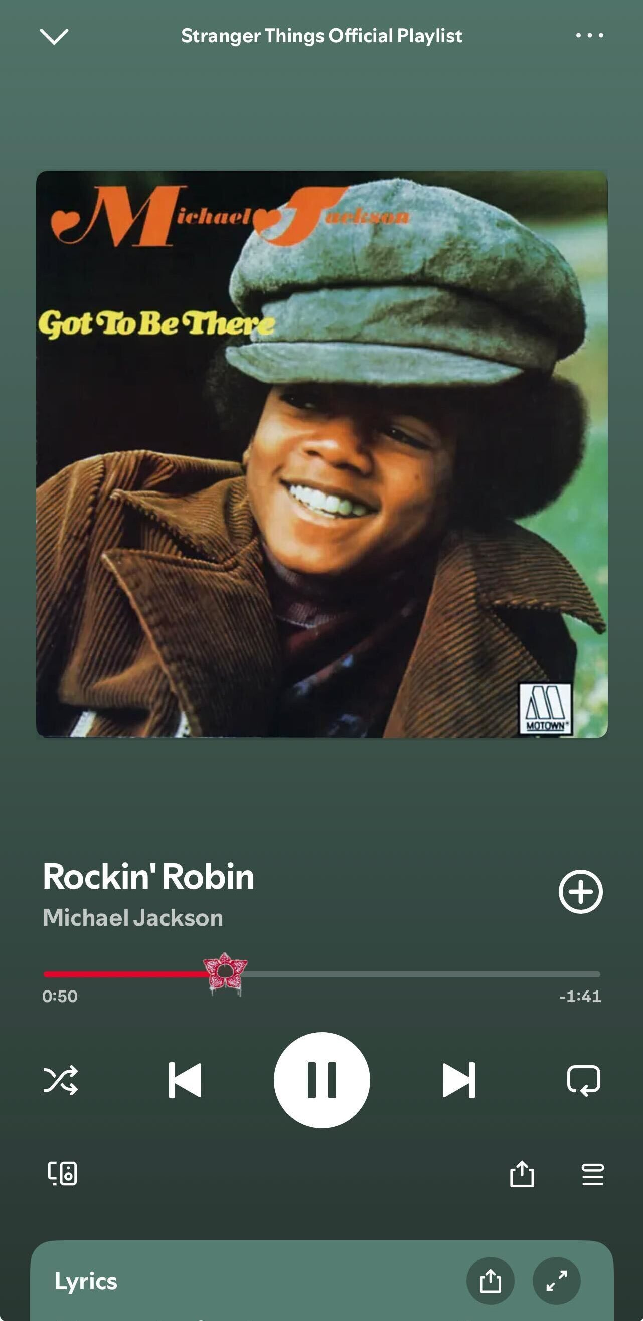 This one is even easier to miss. When you play a track from the playlist on the Spotify mobile app, the normal progress bar transforms into a little Demogorgon head.