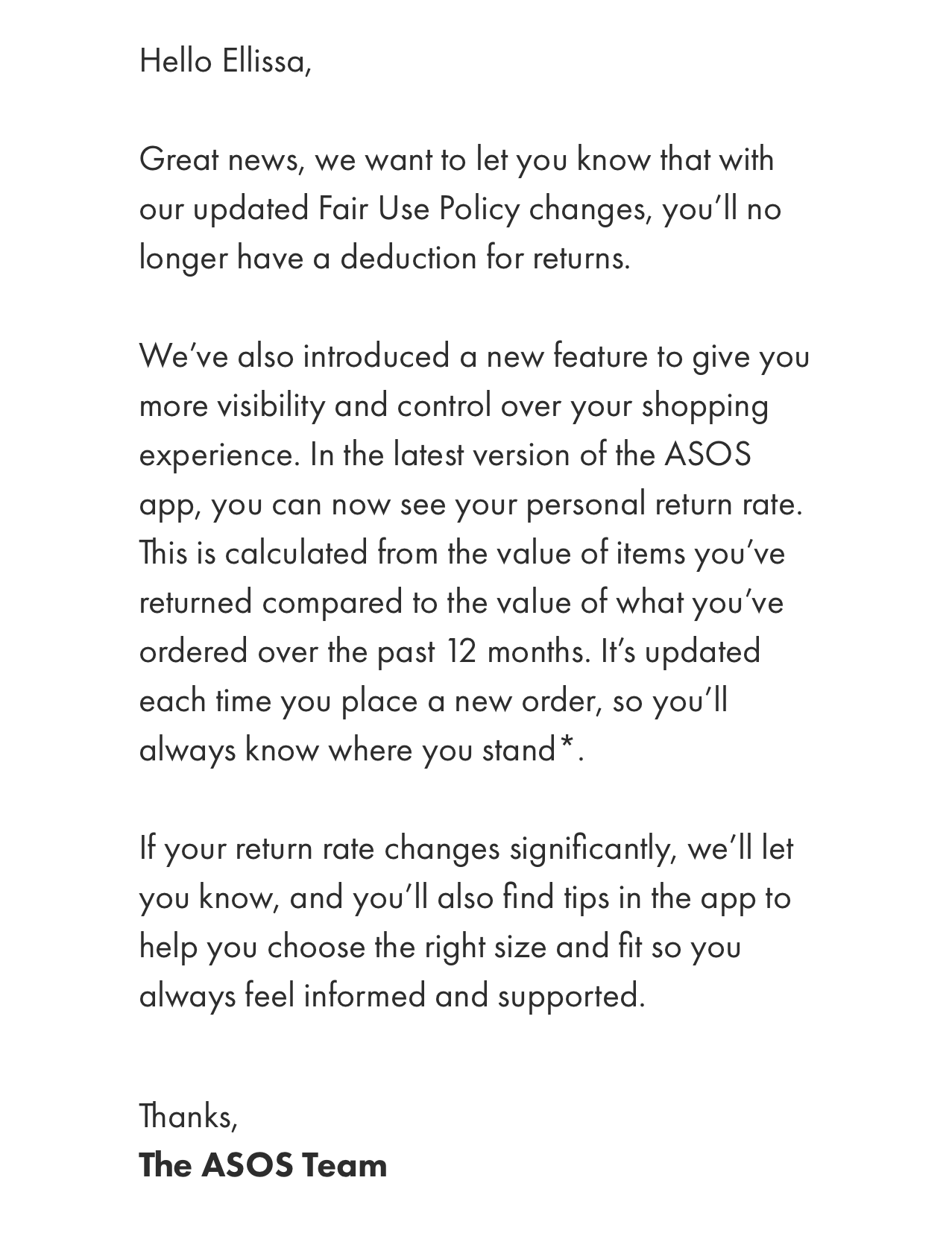 Back in 2024, ASOS introduced a policy where a select group of customers were required to retain a minimum value from their purchase in order to avoid paying return fees.