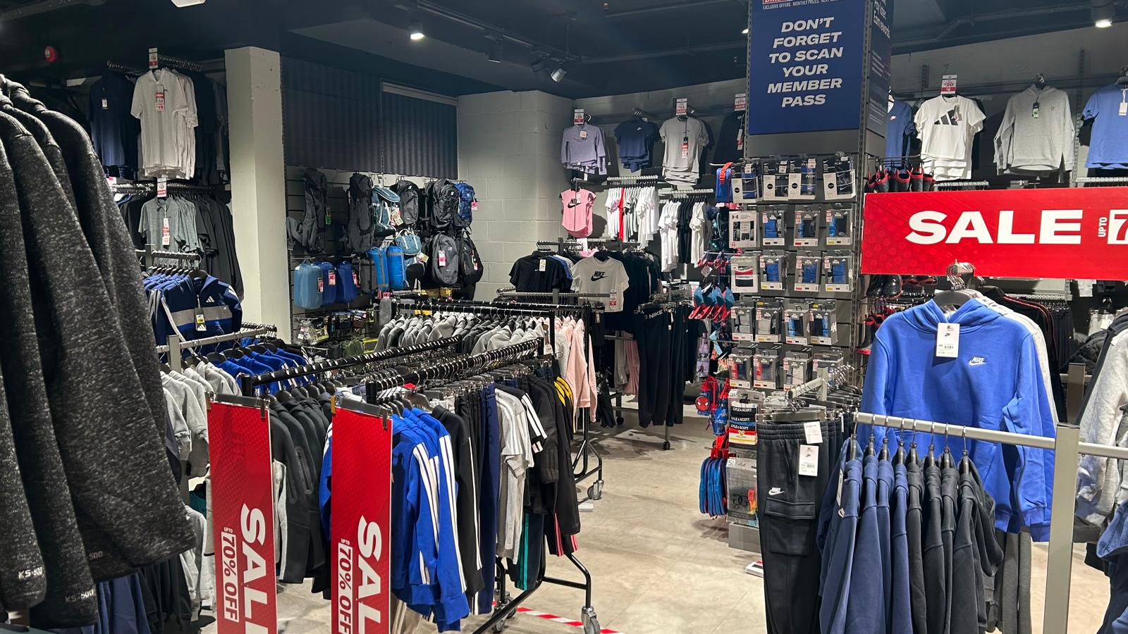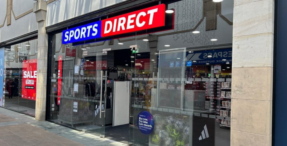 The Sports Direct store is 7,000 sq ft and houses sportswear, sports accessories, footwear, Lego, and more.