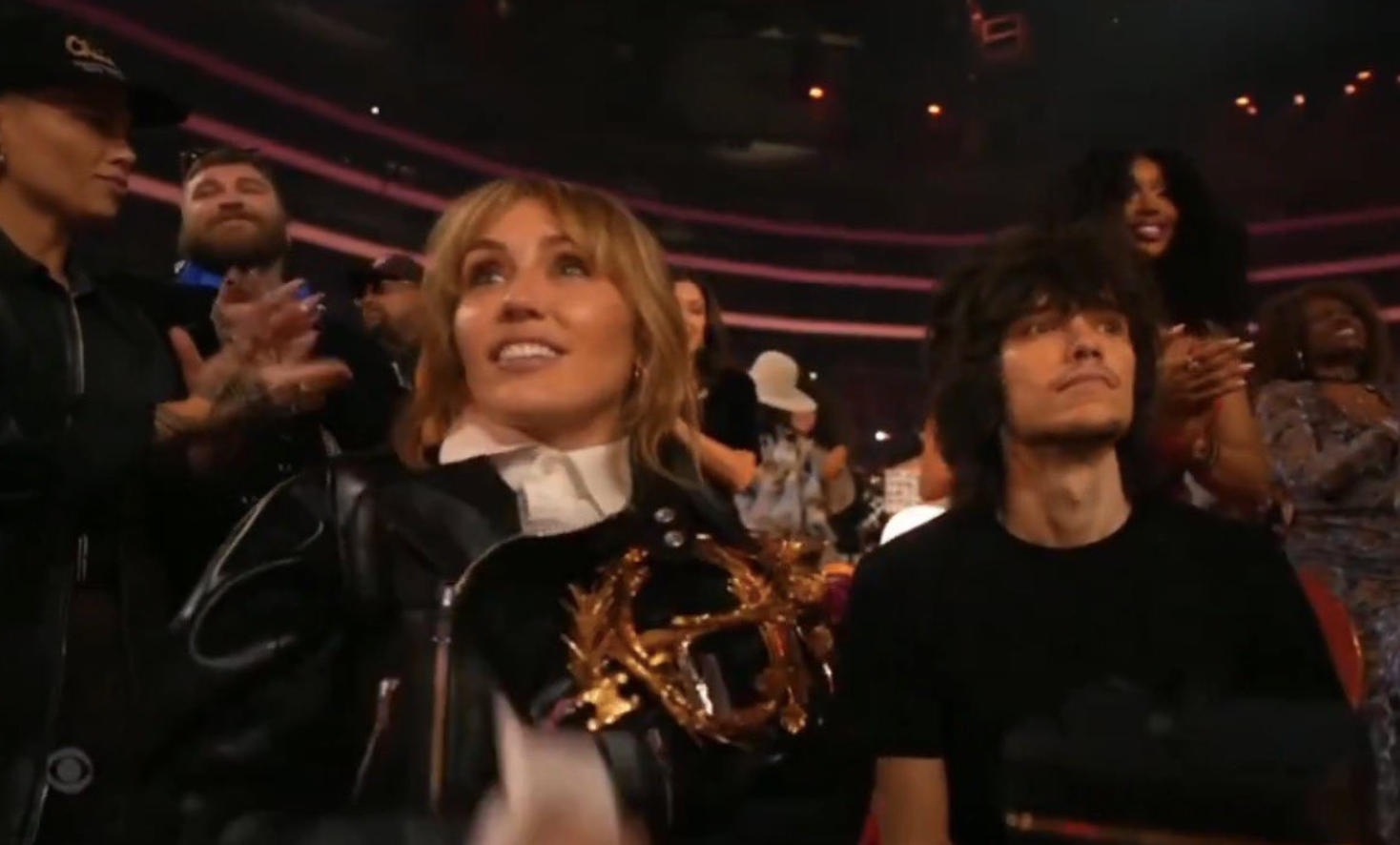 Sabrina Carpenter, who had also just lost out on the award, was spotted jumping to her feet, clapping and smiling as the camera panned the room. Miley, however? Not so much.