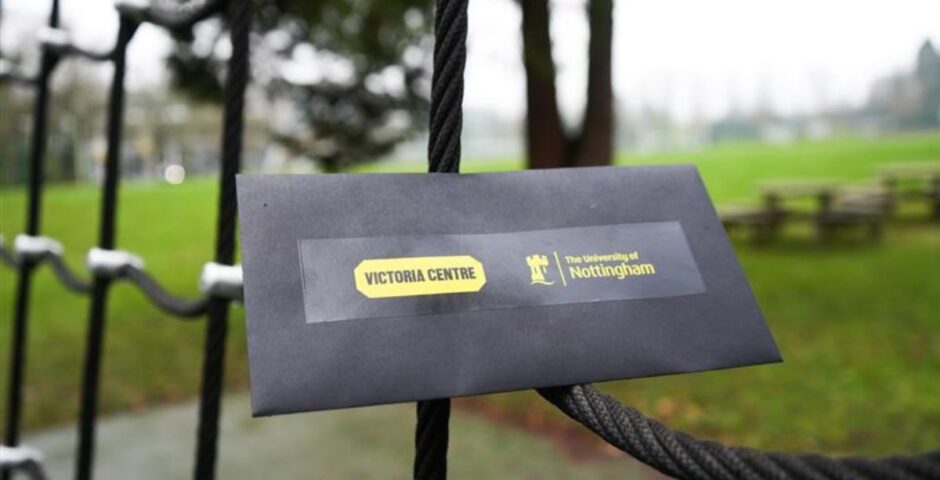 The gift cards, enclosed in black envelopes, were discovered hidden on the campuses of Nottingham Trent University and the University of Nottingham campuses, as well as in the Victoria Centre itself.