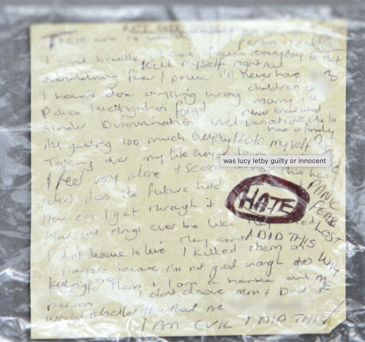 In police interviews shown in the documentary, Letby said she wrote the words during an emotionally difficult period after being moved off the neonatal unit and while receiving counselling.