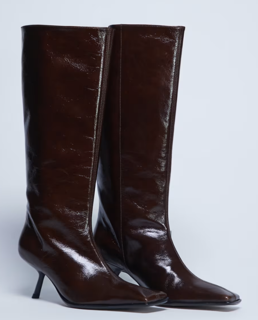 These boots have got it all – square toe, glossy chocolate, and a devilish energy. An excellent option for her if you want to gift a sexy statement without doing the predictable lingerie thing. Buy them on ASOS here.