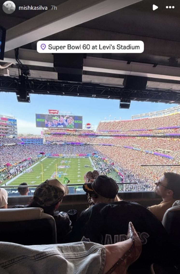 Footage from the broadcast showed the pair sitting close together among other celebrity guests while they watched the game and the star-studded halftime show, which featured a set by Bad Bunny and appearances from special guests.