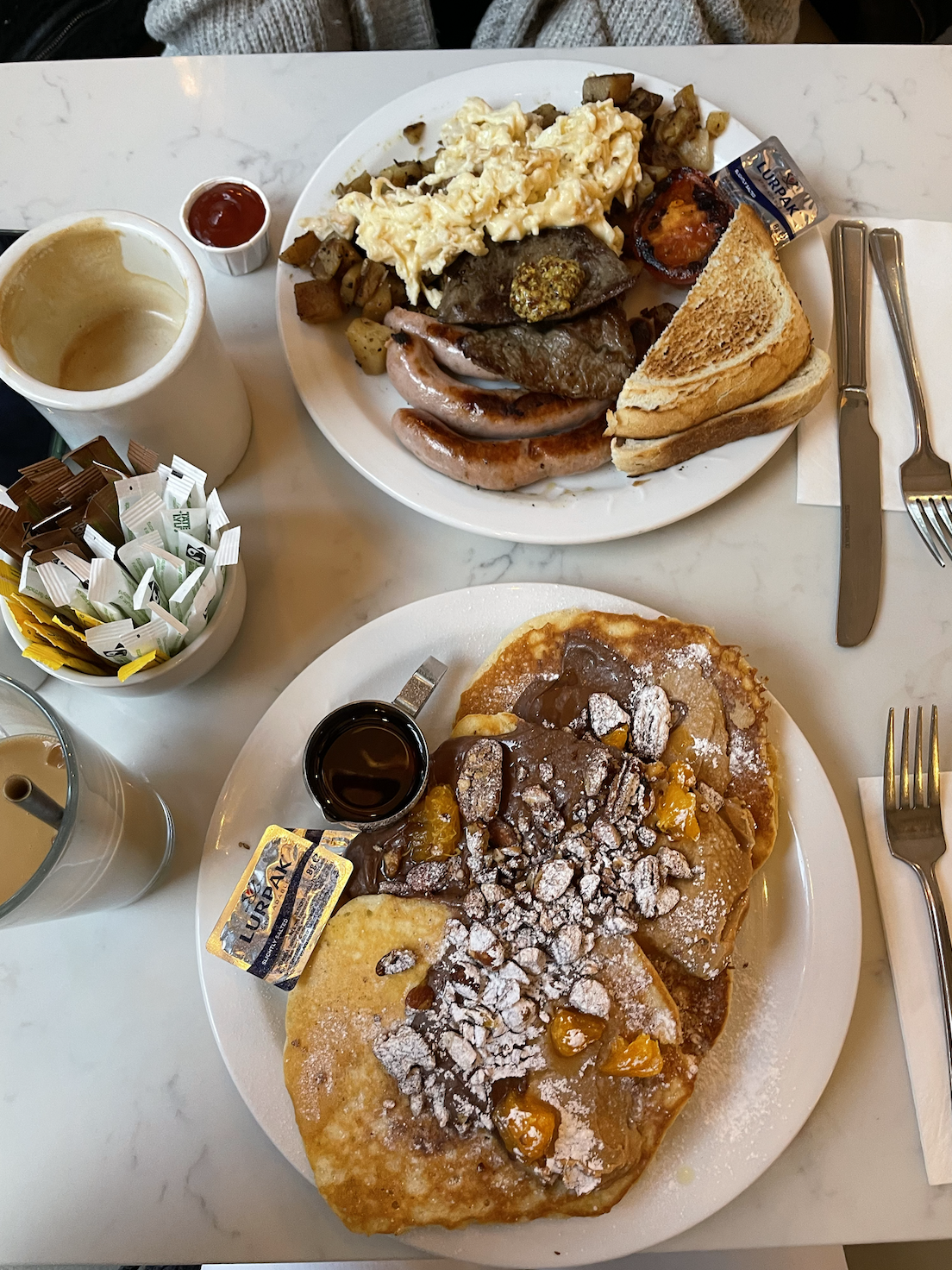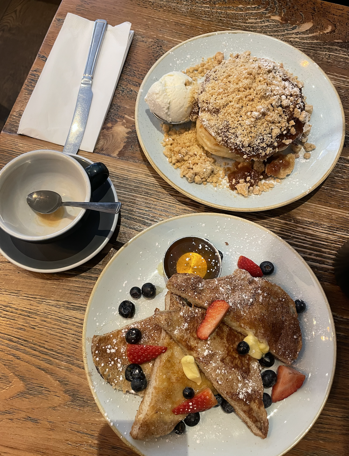 Things like honey, syrup, pouring crème, just taste better and are more Instagrammable when served in tiny pots that can’t be used for anything else. Nothing says “disposable income” better than excess tableware.