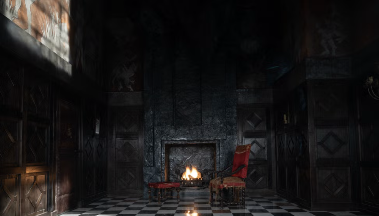 Hanging in the Heights’ parlour is a partially obscured painting inspired by a church mural depicting the Seven Deadly Sins. It’s never fully visible on screen, but its looming presence hints at moral decay and the darkness infecting the household.