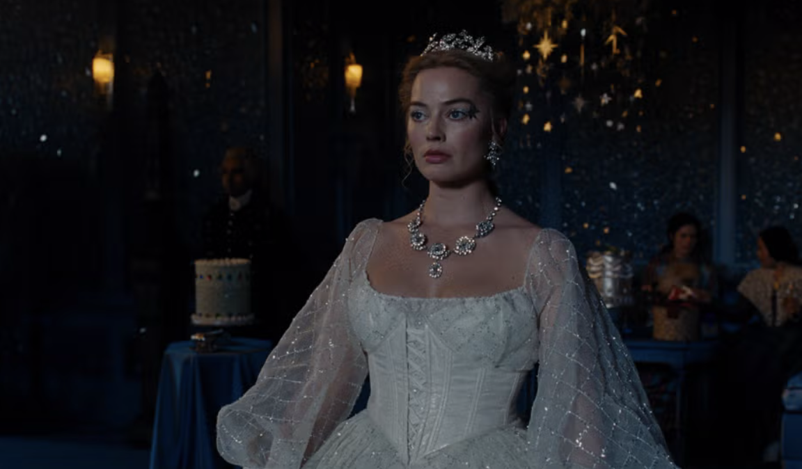 Perhaps the film’s most disturbing space is Catherine’s “skin room”. Davies created padded wall panels modelled on Margot Robbie’s arms, complete with veins and freckles, then covered the vanity and bed with strands of blonde hair.