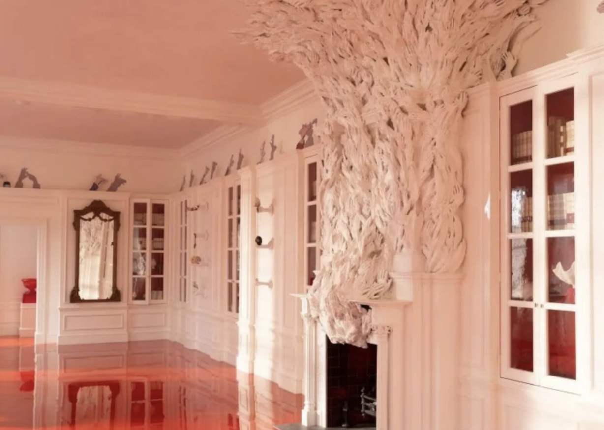 One of the strangest recurring motifs is hands. They appear in chandeliers, candleholders, fireplaces, and ceiling roses, many sculpted from the production team’s own hands. Some even form cheeky shadow-puppet shapes.