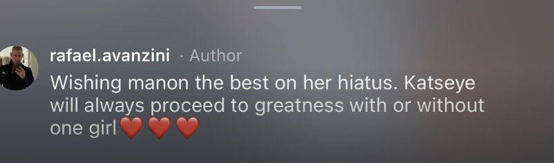 He also allegedly wrote that he was “wishing Manon the best on her hiatus” while adding that KATSEYE would “proceed to greatness with or without one girl”.