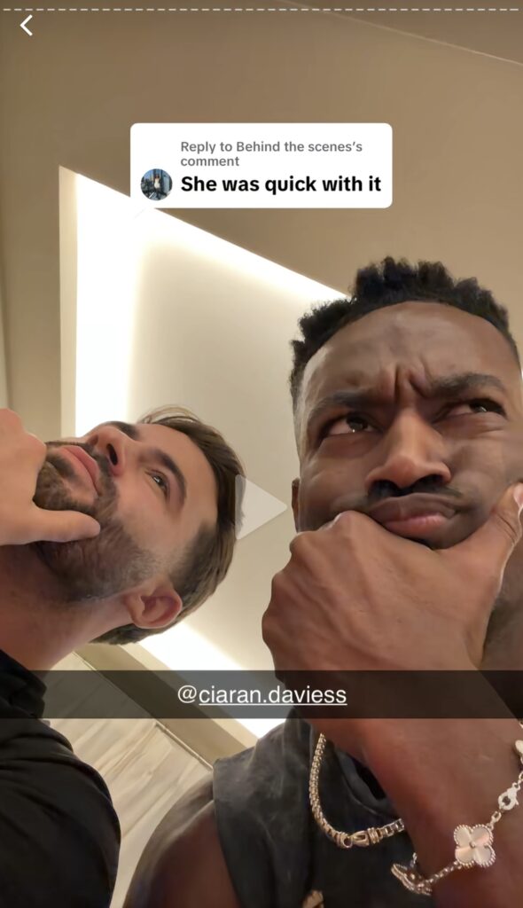Ciaran has reacted to the fake video of Samie and Tyrique too. In a Snapchat story with Yamen, he replied to a dig about Samie which said: “She was quick with it.” They posted a confused selfie with their hands on their chins in response, and then Zac and Carrington joined in too.