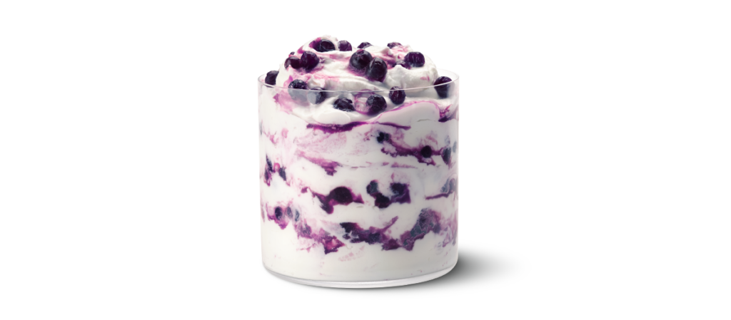 There are two different meals, a breakfast one and a lunch one, and a Derpy McFlurry, which blends creamy vanilla soft serve ice cream with berry popping pearls, finished with a wild berry sauce.
