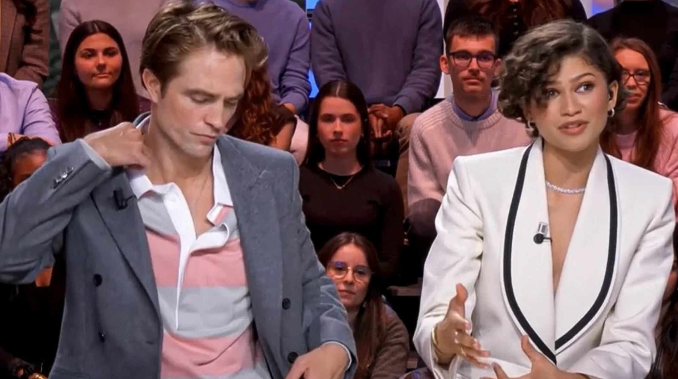 Ahead of The Drama’s release next week, Robert Pattinson and Zendaya made an appearance on French talk show Quotidien, aka the internet’s favourite “French show with the good lighting”, where Zendaya was confronted with supposed wedding photos.