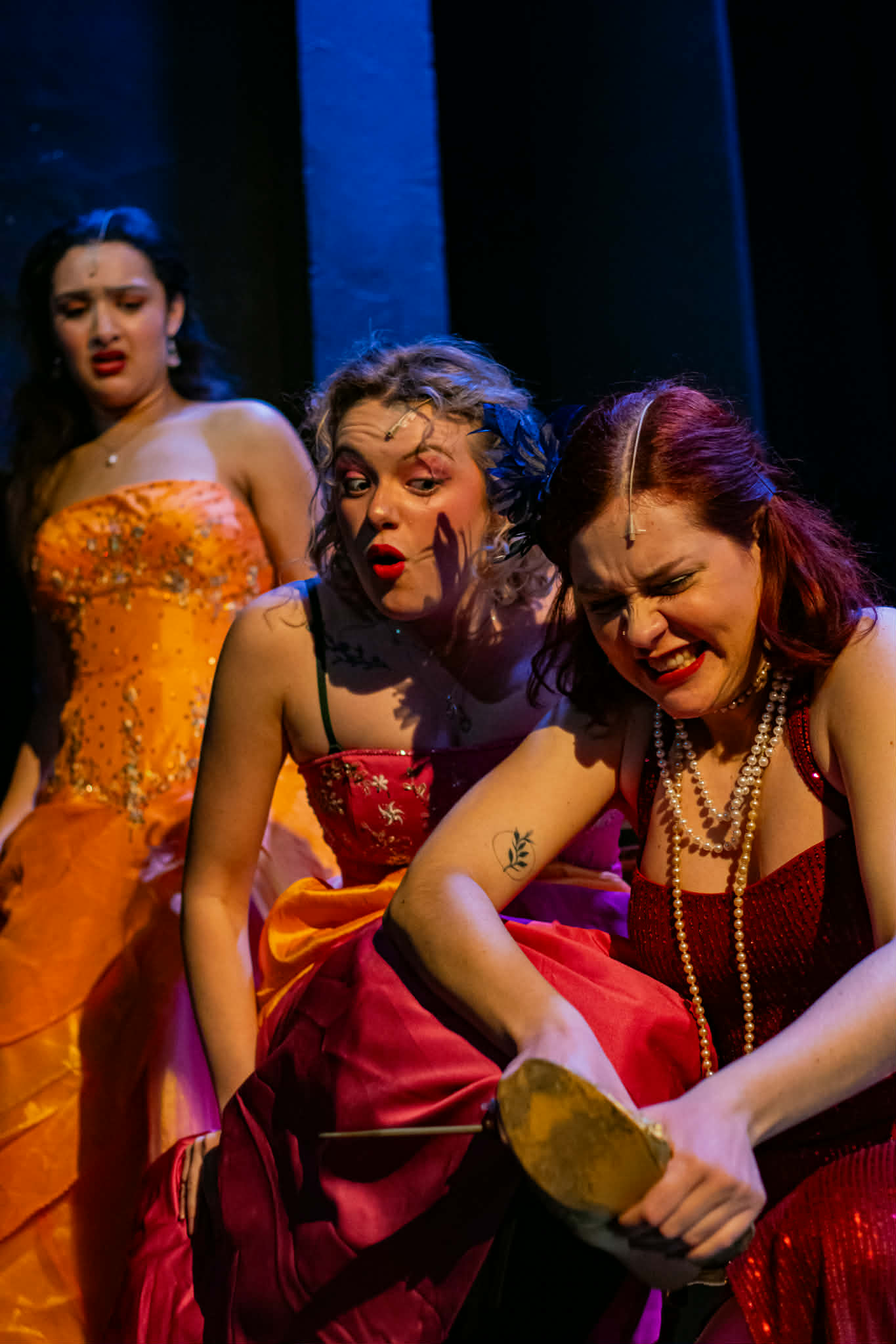 This is paralleled by Mornin’s Litte Red who starts the show as the embodiment of innocence and ends it seeing violence as a first response to troubles, having been traumatised by her predation at the hands of the wolf. There is an element of political commentary here about the exploitation of young and impressionable women to ‘stray from the path’ by powerful older men which feels particularly timely.