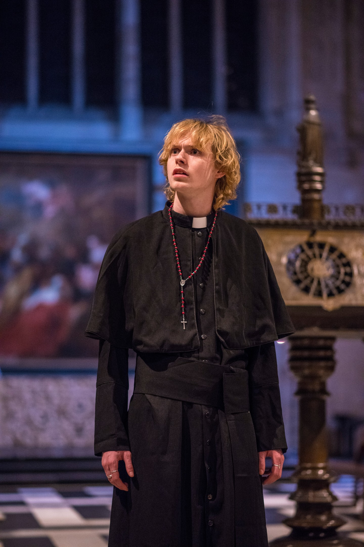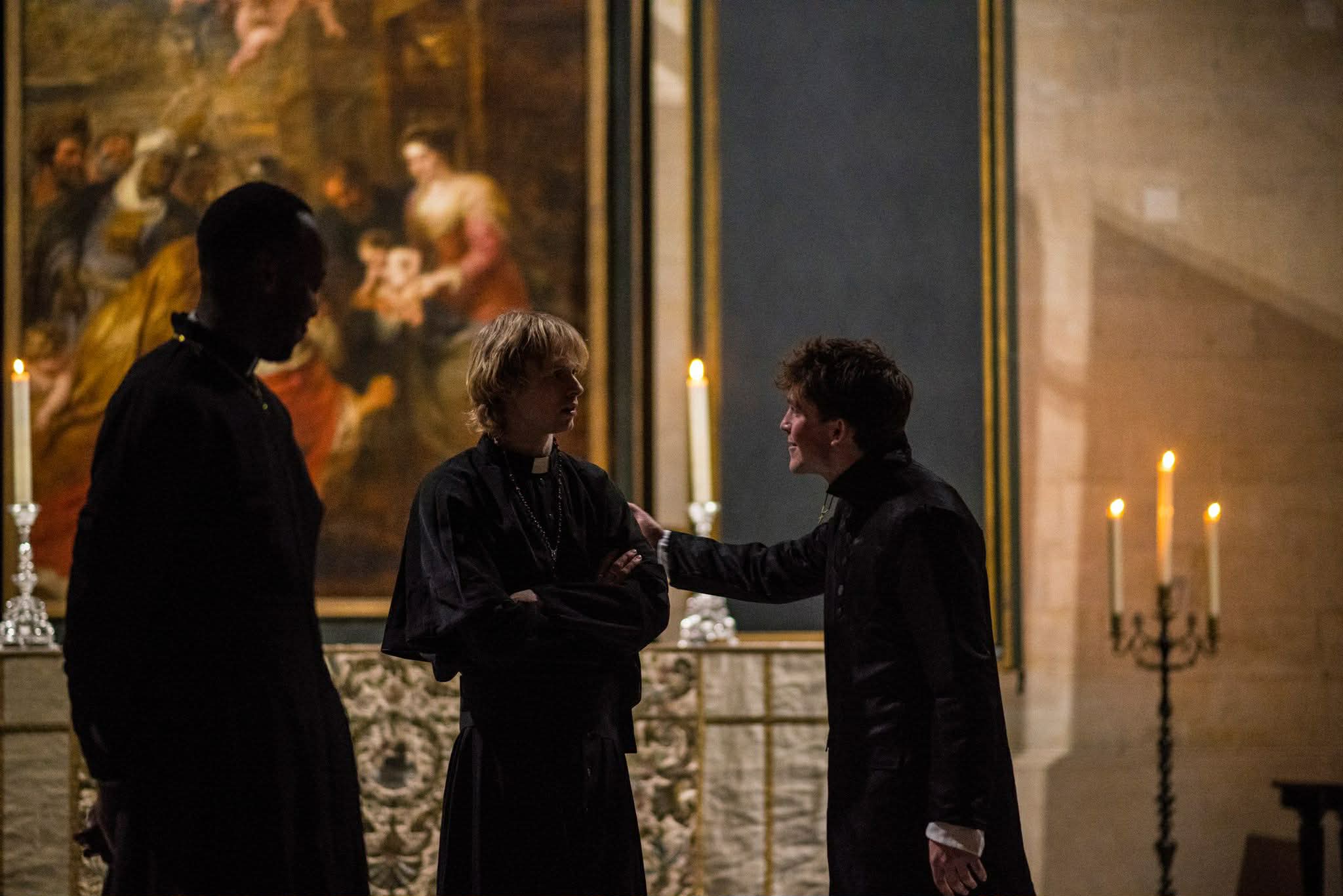 Hamlet in the Chapel, directed by King’s Evie du Bois, reimagines Hamlet as a young Priest in a Church that seems to slip closer to sin with each passing day. Following the death of the past Head of Church and State, in lieu of a conclave, the King’s brother takes the Zuchetto, leaving young Hamlet with suspicions around the circumstances of his father’s death. You know what happens next – we’ve all seen The Lion King- except here the ghost appears to a fantastic original Choral score by Rich Mandel, and everyone acts much more bestial.