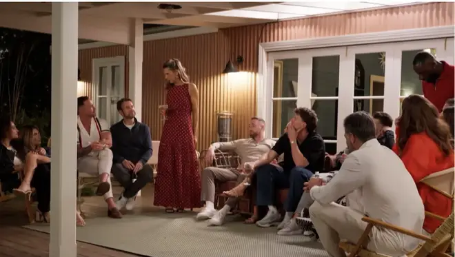 On the first evening, Bec stood up, gave a speech and announced to the whole group that Steven and Rachel had been “finger banging”. As you can imagine, Rachel wasn’t best impressed. Danny looked like he was supporting his wife despite her gross joke, but according to combined communications specialist and body language expert Scott Taylor, that’s not the case.