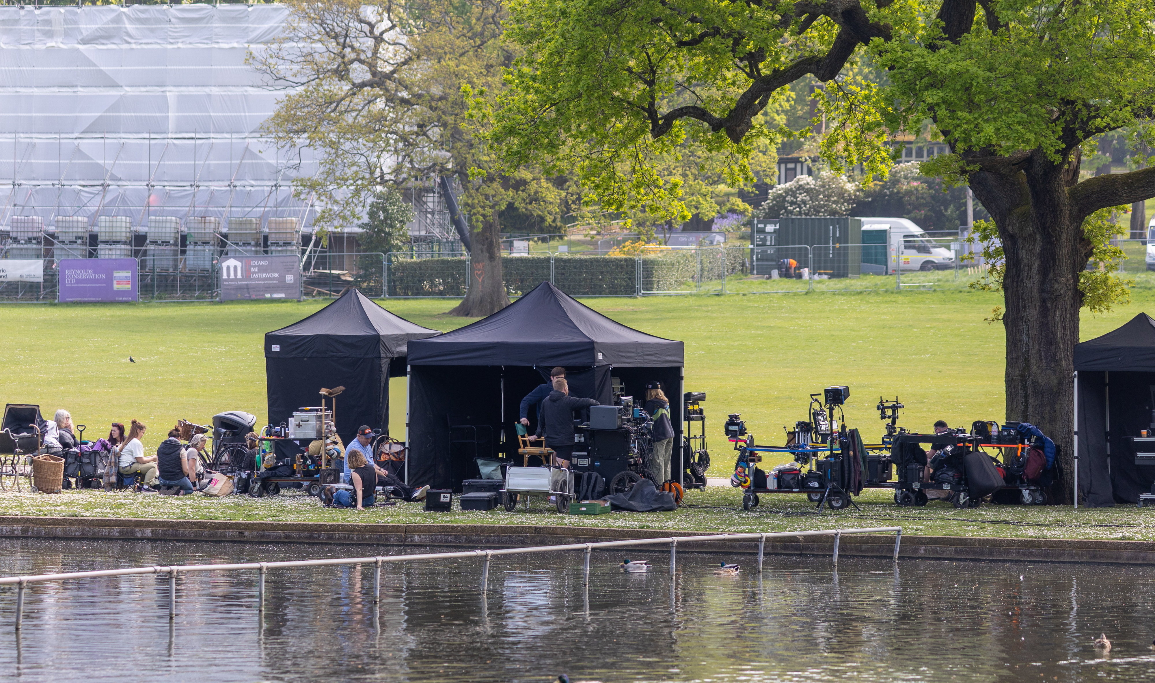 Film crews were seen filming dramatic scenes throughout the day in Birmingham’s largest park.