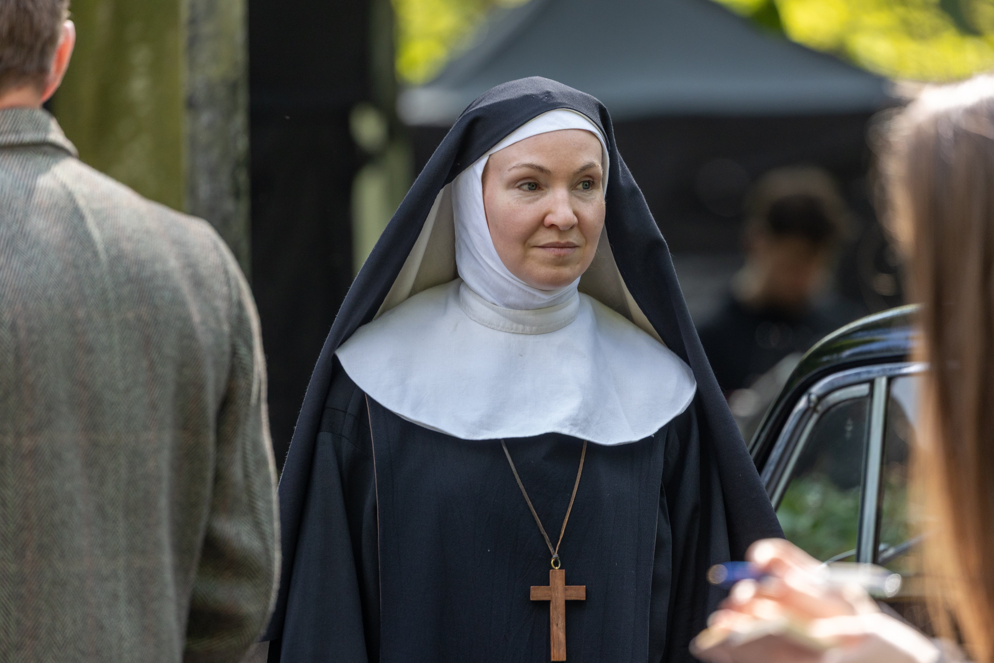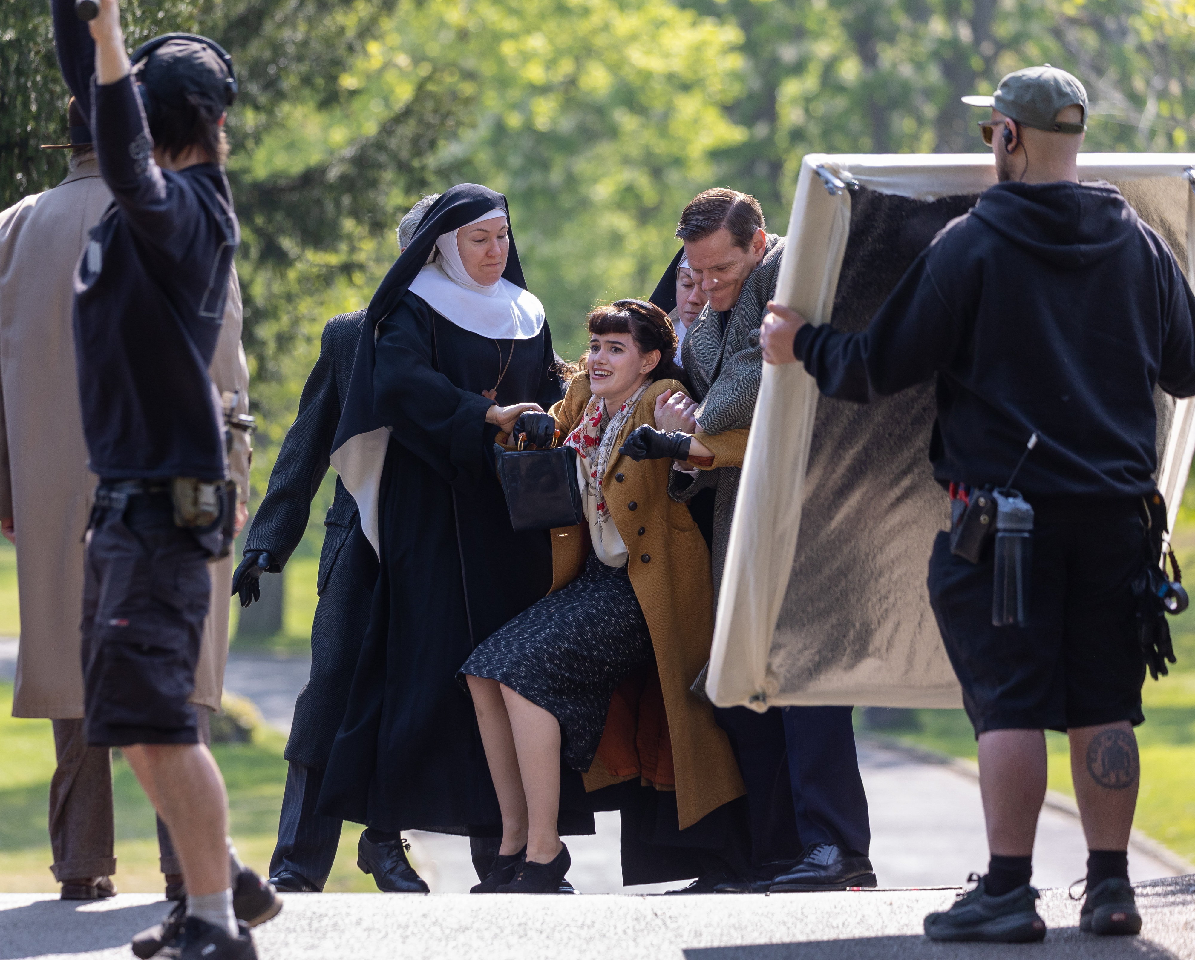 He was seen to be chatting to a woman as they walked over the bridge. The woman is then dragged over the bridge by a man and two nuns, screaming: “No, get off me, please.”
