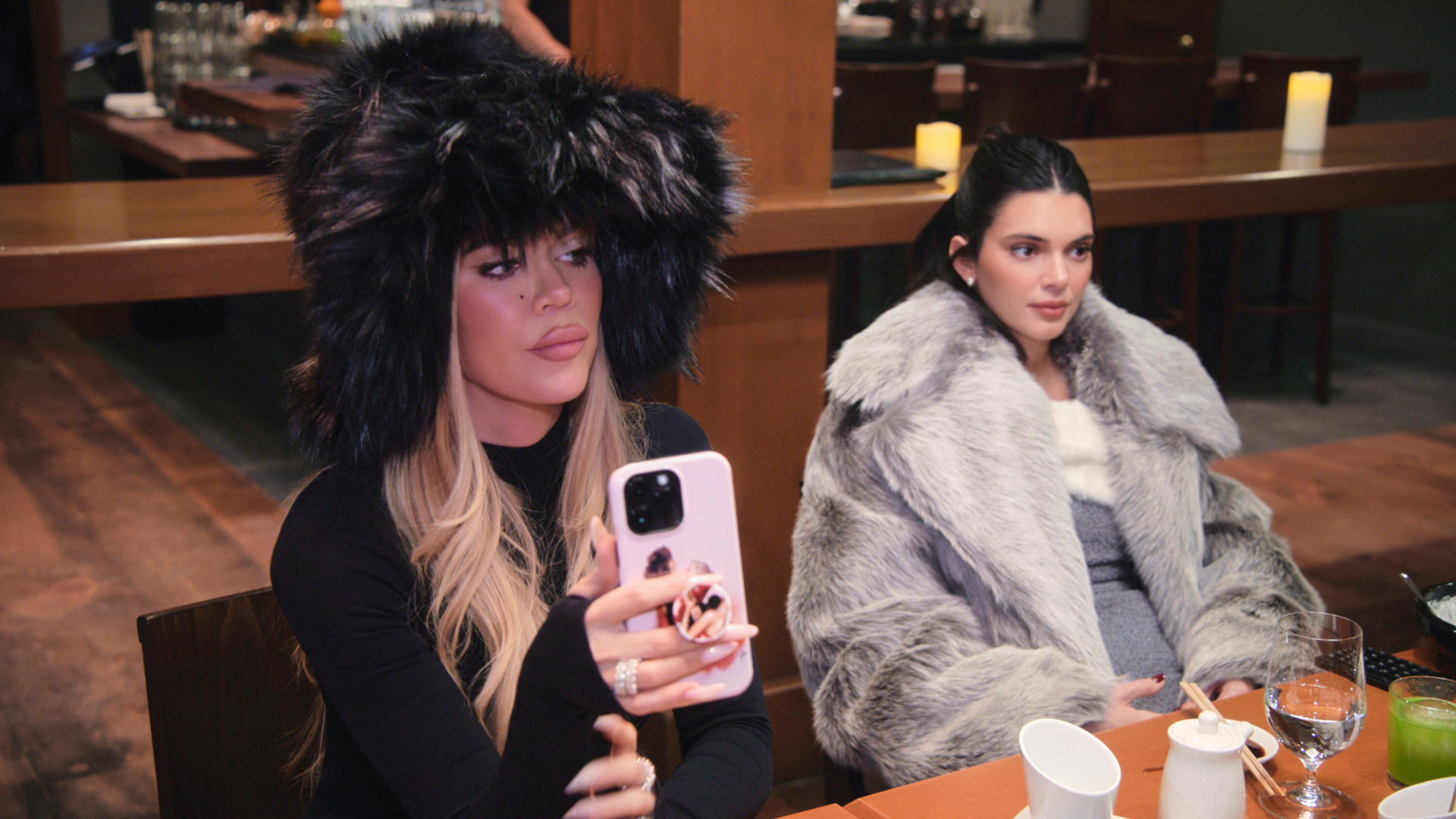 Kendall Jenner calls someone with sister Khloe Kardashian next to her. Rumor has it she’s not speaking to her siblings, but tells someone on the phone, “I’m so mad. You guys aren’t my real family.”