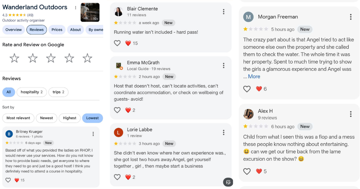 And despite this happening on a reality show, RHOP viewers have felt so enraged by Angel Massie that they’ve now started leaving negative one star reviews for Wanderland Outdoors, despite having never actually used her business. Like guys, it’s really not that deep.