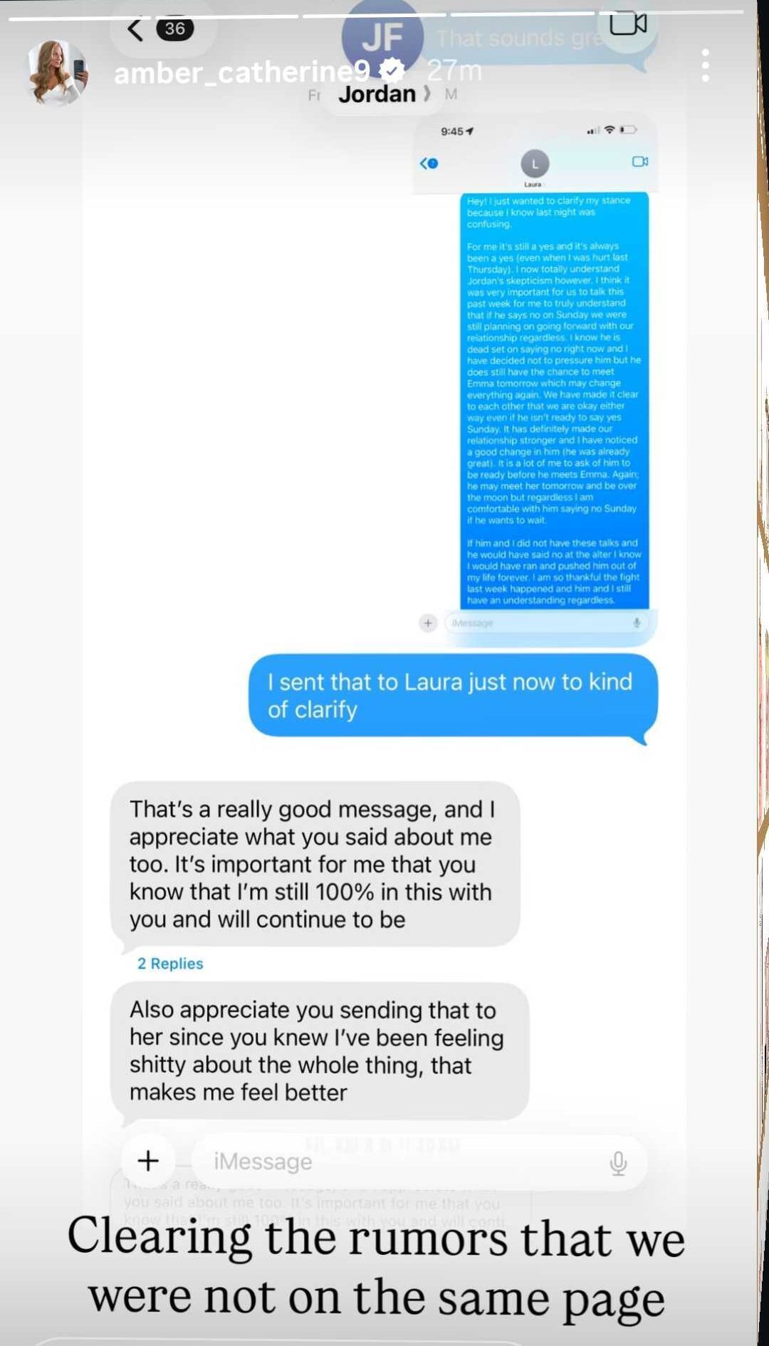 As for who Laura is, she appears to be one of the Love Is Blind producers, as Amber also shared the message she had sent to her earlier that morning discussing her relationship with Jordan.