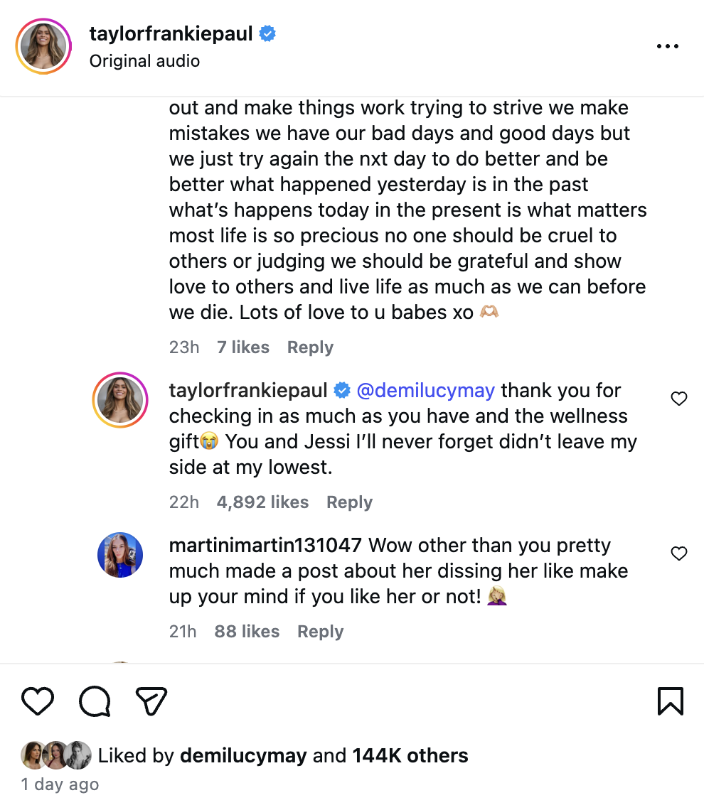 As for the second Mormon Wives star still seemingly in Taylor’s corner, she also mentioned Demi Engemann in her Instagram comment.