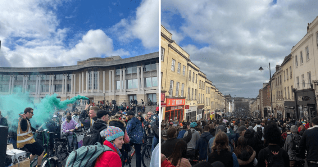 Thousands of people cycle through Bristol for ‘Drum and Bass on the Bike’ event