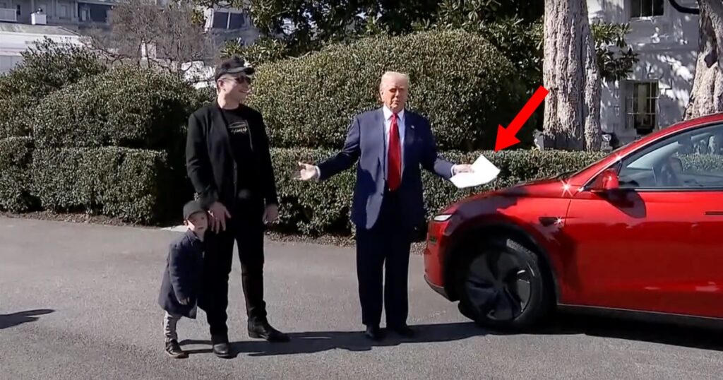 This is what was written on Trump’s notes at the Tesla event and it’s actually hilarious
